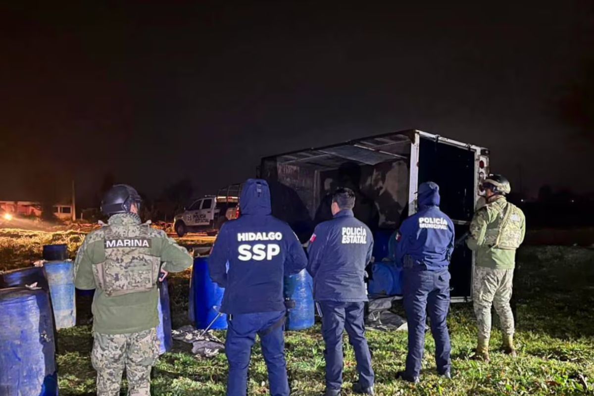En un operativo conjunto, autoridades de los tres niveles de gobierno ejecutaron seis órdenes de cateo en el estado de Hidalgo, donde se localizaron predios utilizados para la venta y almacenamiento de huachicol.
