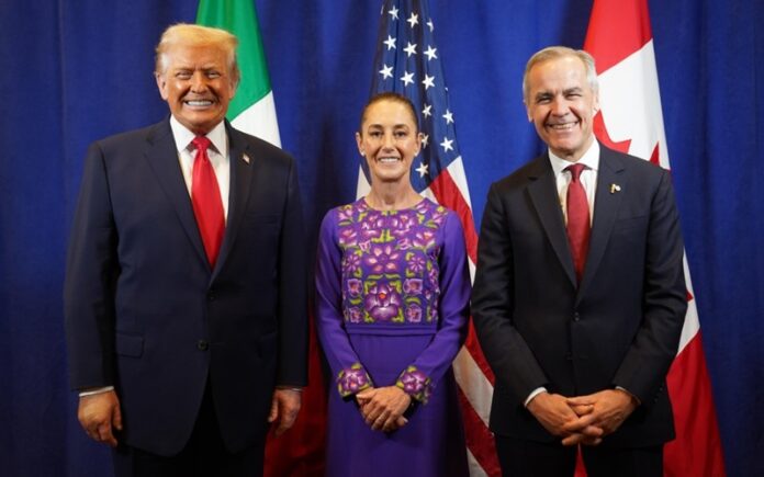 La presidenta de México, Claudia Sheinbaum, aseguró que su primera reunión trilateral con el presidente de EE. UU., Donald Trump, y el primer ministro canadiense, Mark Carney, fue “excelente”. La mandataria sostuvo que los tres países acordaron mantener una coordinación estrecha en materias comerciales, pese a las recientes declaraciones de Trump sobre la posible expiración del T-MEC en 2026. La reunión se produjo después del sorteo del Mundial 2026, en Washington, donde los tres líderes compartieron escenario y momentos distendidos durante el evento deportivo.