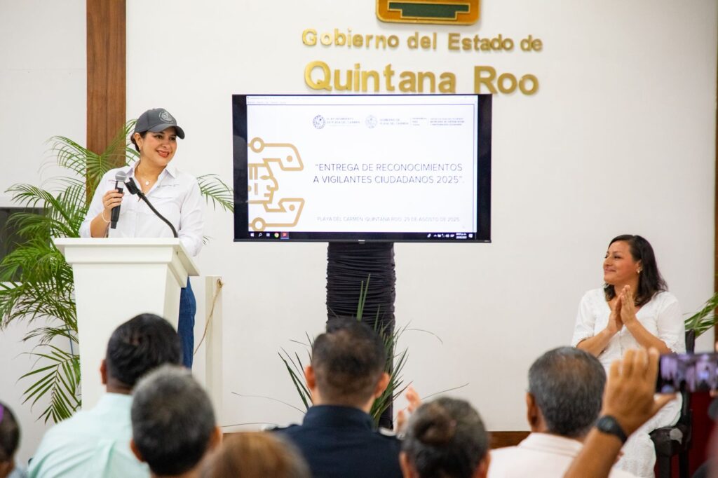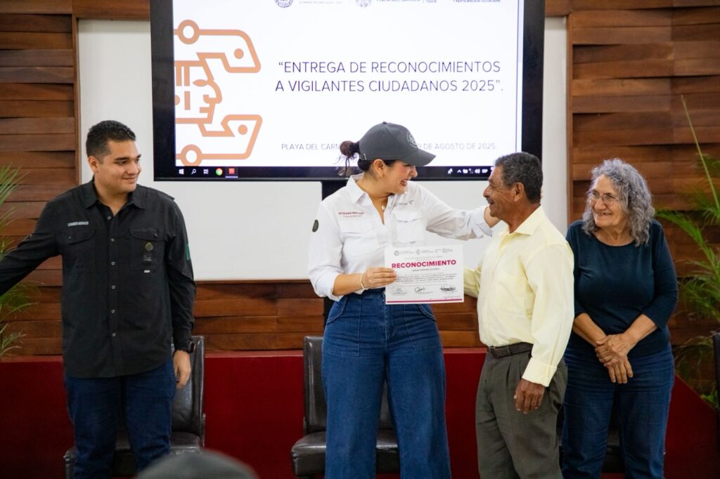 La presidenta municipal Estefanía Mercado entregó reconocimientos a 180 adultos mayores del programa Vigilantes Ciudadanos en el auditorio Leona Vicario del nuevo Palacio Municipal, destacando su compromiso con la seguridad y el bienestar de la niñez y juventud de Playa del Carmen. Los galardonados, quienes recibieron capacitación en derechos humanos, igualdad y prevención de la violencia, fueron elogiados como “lo mejor” de la ciudad por su espíritu de servicio y dedicación.