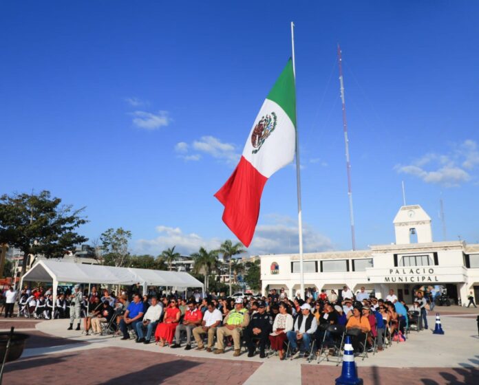 El acto contó con la participación de autoridades de los tres niveles de gobierno, así como de estudiantes y ciudadanos de Playa del Carmen. Se rindieron honores a la bandera, se entonaron los himnos nacionales y se otorgaron reconocimientos a estudiantes que destacaron en la ceremonia.