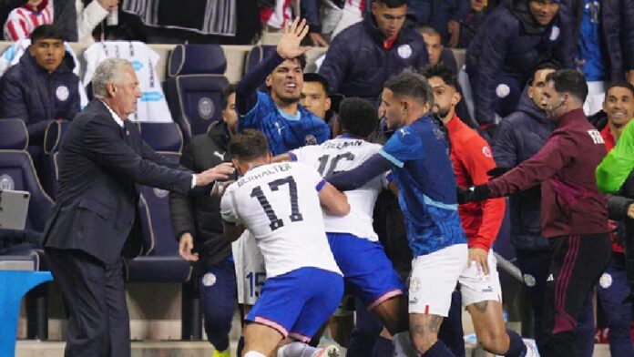 El conflicto comenzó en el minuto 91 durante un saque de banda, cuando Gómez y el defensor estadounidense Alex Freeman se enfrentaron por una pelota dividida. La situación escaló rápidamente con un cruce de palabras y la intervención de Sebastian Berhalter, lo que derivó en empujones y golpes entre varios futbolistas. Incluso miembros del banco intentaron separar a los involucrados sin éxito. En uno de los momentos más delicados, Gómez tomó del cuello al arquero estadounidense Matt Freese, provocando una herida visible en Freeman y golpes leves a otros jugadores y asistentes.