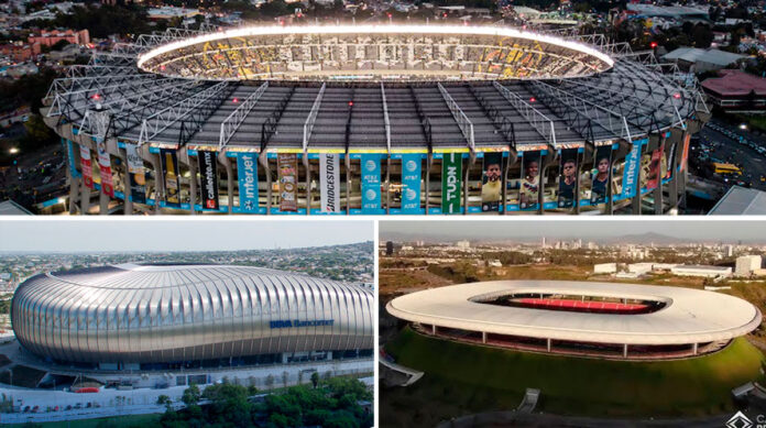 Los tres estadios se renombrarán temporalmente de acuerdo con las normativas de la FIFA. Así, el Estadio Akron será conocido como Estadio Guadalajara , el Estadio BBVA como Estadio Monterrey , y el Estadio Banorte cambiará su nombre por Estadio Azteca Ciudad de México . Esta decisión se debe a la estricta regulación que tiene el organismo respecto a los nombres de los recintos.