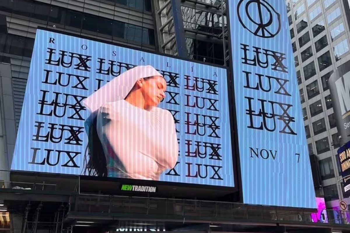 El revuelo empezó con un error logístico: pantallas de Times Square revelaron el anuncio una hora antes, mostrando a Rosalía en atuendo religioso junto a la fecha y el símbolo de paz que había insinuado en redes.