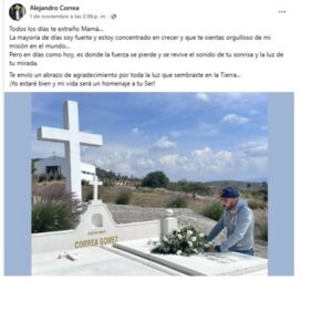 Poco antes de su desaparición, Correa Gómez compartió un mensaje emotivo en su perfil de Facebook dirigido a su madre fallecida, expresando: