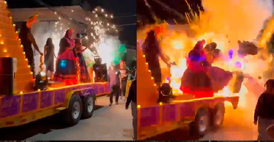“El recorrido inició en la explanada de la Loma y tenía como punto final el zócalo municipal. Al parecer, la combinación de pirotecnia y materiales inflamables del carro provocó la explosión”, informó Protección Civil estatal.