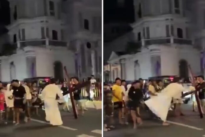 «La patada voladora de Jesús»: Viacrucis termina en viralidad tras insólita escena durante Semana Santa