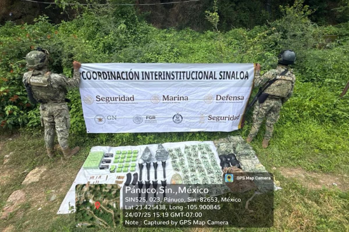 Según la Semar, estos materiales eran utilizados por células delictivas para mantener el control territorial en Sinaloa. En San Ignacio, cerca del poblado de San Juan, los infantes de Marina desmantelaron tres narcocampamentos abandonados. Ahí se incautaron 80 artefactos explosivos improvisados, un arma larga, 2,182 cartuchos, 37 cargadores y más equipo táctico. Todo el material fue entregado a las autoridades para las investigaciones correspondientes.