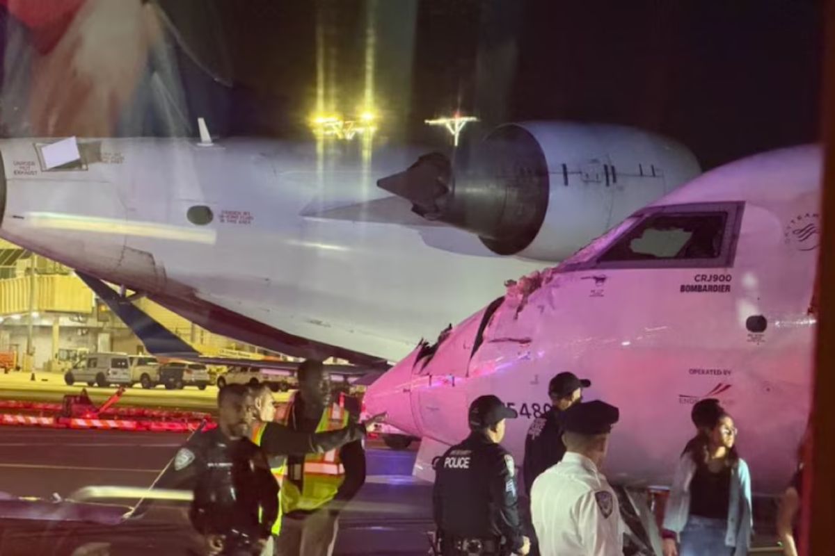 Dos aviones regionales de Delta Connection, operados por Endeavor Air, colisionaron a baja velocidad mientras rodaban por la pista del aeropuerto LaGuardia alrededor de las 21:56 hora local. El incidente, que involucró un CRJ-900 preparándose para despegar hacia Roanoke, Virginia (con 28 pasajeros y 4 tripulantes), y otro que llegaba de Charlotte, Carolina del Norte (con 57 pasajeros y 4 tripulantes), provocó daños visibles en el fuselaje y un ala, pero solo una asistente de vuelo resultó con lesiones leves. Pasajeros y tripulantes fueron evacuados rápidamente y trasladados a la Terminal C en autobuses, sin interrupciones mayores en las operaciones aeroportuarias. La FAA y la NTSB iniciaron una investigación inmediata, analizando comunicaciones de control aéreo y registros de movimiento.