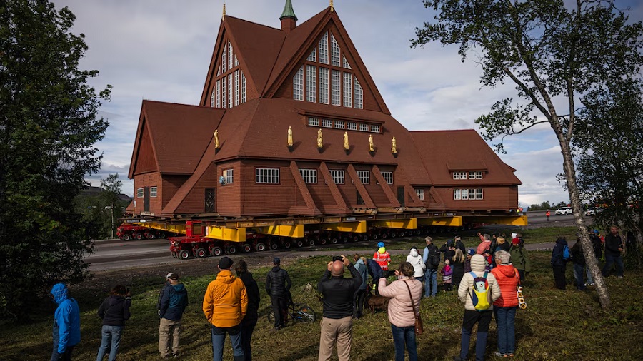 Kiruna Kyrka no solo tiene valor religioso: diseñada por Gustaf Wickman, su arquitectura se inspira en el lávvu, la cabaña tradicional del pueblo sami. En su interior se preservan un retablo pintado por el príncipe Eugen y un órgano con más de 2.000 tubos, ambos embalados con extremo cuidado para el traslado.