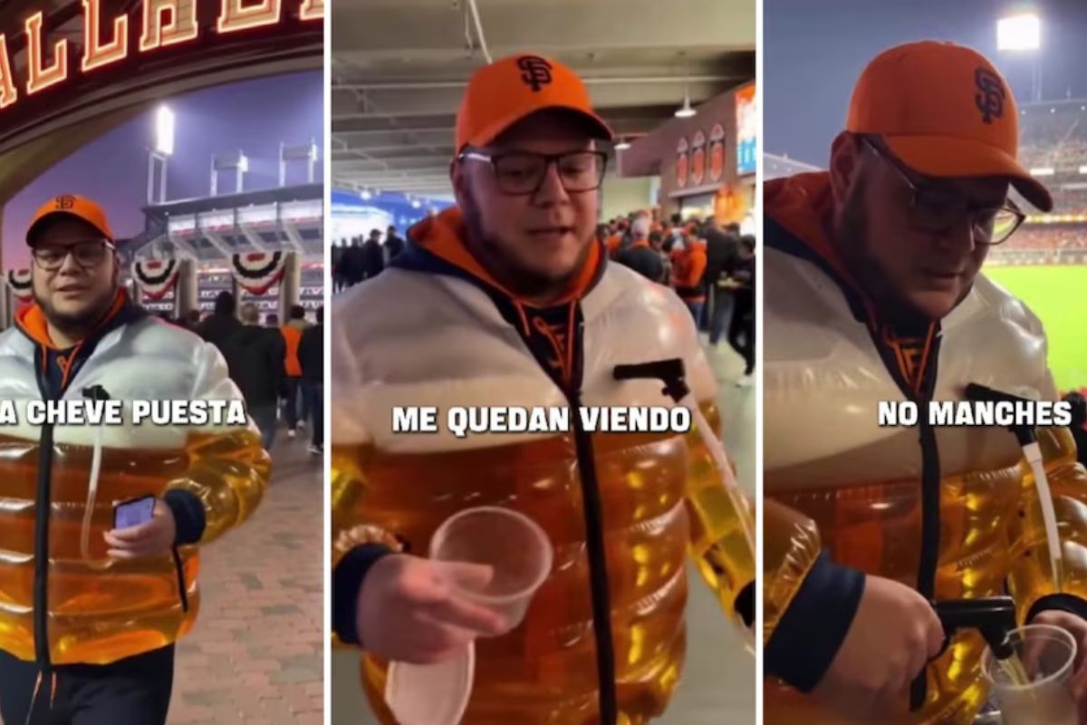Un video que ha roto internet en México muestra a un aficionado al béisbol venciendo los altos precios del estadio con una chamarra modificada que funciona como dispensador portátil de cerveza. El clip, grabado durante un partido —posiblemente de Diablos Rojos o Sultanes—, captura al joven llenando su vaso con total naturalidad desde una manguera oculta en la prenda, hecha de hule impermeable con capacidad para varios litros.
