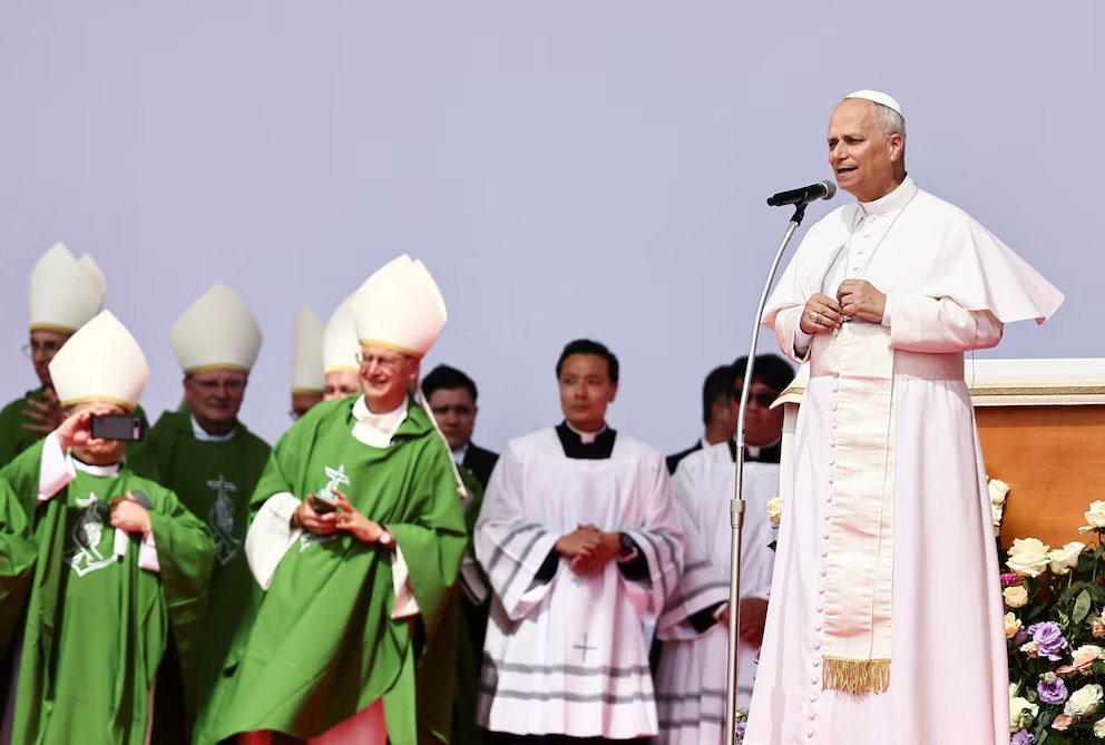 León XIV llegó en helicóptero la mañana del domingo y recorrió el sitio en papamóvil, saludando a los asistentes. En el altar lo acompañaron 450 obispos y más de 700 sacerdotes.