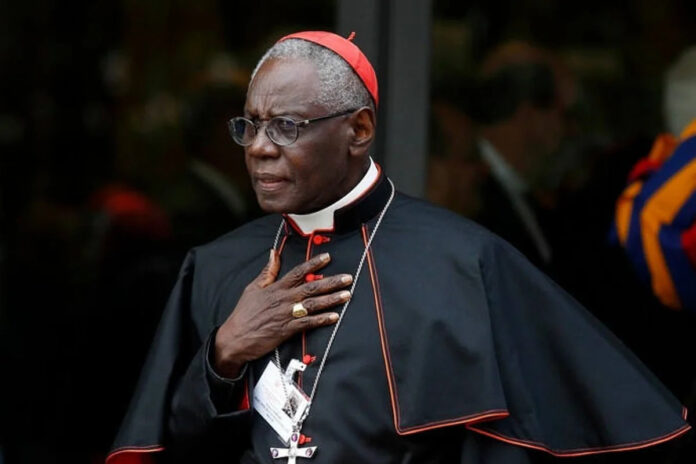 Nacido el 15 de junio de 1945 en Ourous, Guinea, Robert Sarah fue ordenado sacerdote en 1969. En 1979, con solo 34 años, fue nombrado arzobispo metropolitano de Conakry por el papa Juan Pablo II. Desde entonces ha desempeñado múltiples funciones en la curia romana. En 2001 fue designado secretario de la Congregación para la Evangelización de los Pueblos, y en 2010 presidió el Pontificio Consejo «Cor Unum», coordinando las organizaciones católicas de asistencia global.