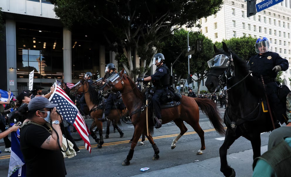 La chispa se encendió cuando más de mil personas se manifestaron durante seis días consecutivos en la ciudad angelina en rechazo a las redadas de ICE. Aunque mayormente pacíficas, las marchas han estado marcadas por algunos incidentes aislados, como la quema de vehículos autónomos y enfrentamientos menores con la policía.