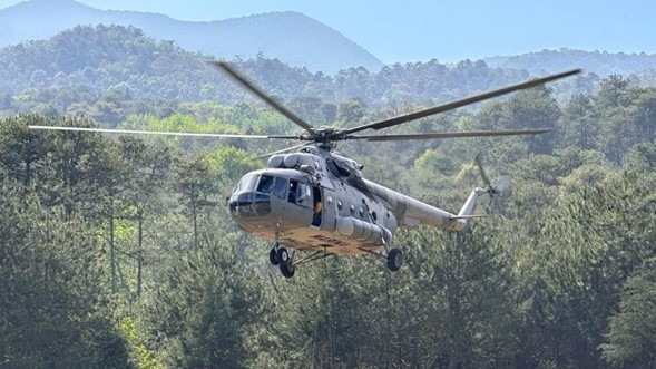 Aeronave de Semar llega a Xilitla por instrucción de Claudia Sheinbaum para combatir incendios forestales