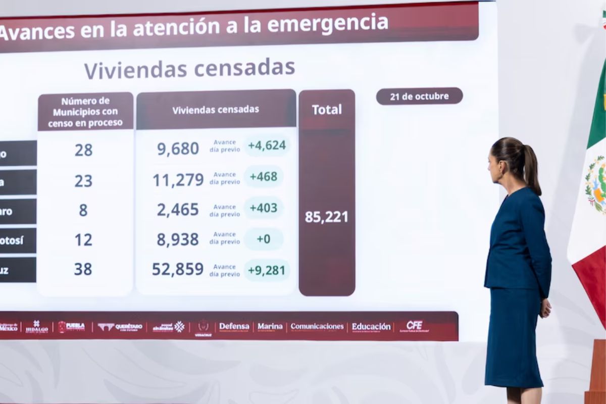 Se entregaron 4,499 chips de telefonía y 13,000 de internet en oficinas CFE y Sepomex para mantener conectividad. Sheinbaum destacó: “Primero los pobres; censamos 79,816 viviendas dañadas, con apoyos directos de 20,000 pesos por familia desde el 25 de octubre”.