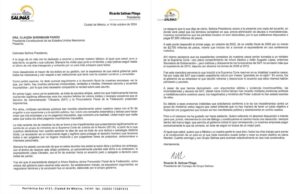 Horas después de su declaración, Grupo Salinas publicó en redes sociales una carta fechada el 14 de octubre de 2024, dirigida a la presidenta Claudia Sheinbaum. En el documento, el empresario manifiesta su disposición a cubrir 7,600 millones de pesos, cantidad que —según su versión— corresponde al adeudo actualizado derivado de resoluciones fiscales acumuladas desde 2006.