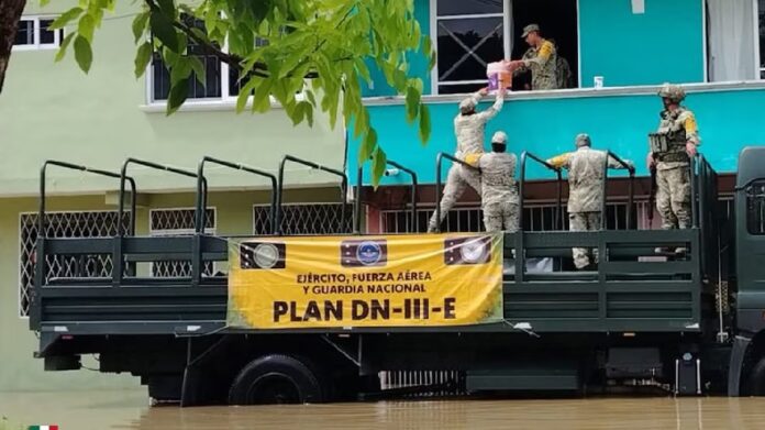 El Plan DN-III-E de la Secretaría de la Defensa Nacional fue activado en los municipios más afectados, permitiendo que unidades de la Sedena, la Guardia Nacional y cuerpos de bomberos trabajen en coordinación para rescatar a personas atrapadas y ofrecer refugio temporal en albergues.
