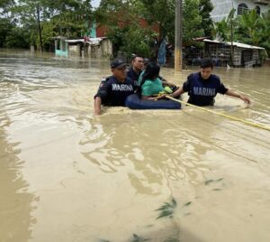 Se desplegaron 3 mil 300 elementos de la Marina en Puebla, Veracruz y San Luis Potosí, mientras la Secretaría de Defensa Nacional instaló albergues en Veracruz y San Luis Potosí. La Fuerza de Apoyo para Casos de Desastres mantiene 512 unidades de maquinaria, 17 aeronaves, 10 cocinas comunitarias, 10 tortilladoras y 48 plantas potabilizadoras para atender a la población afectada.