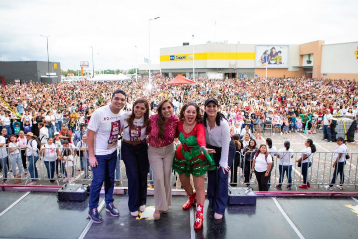 Más de 10 mil personas se dieron cita en el estacionamiento de Chedraui de Villas del Sol para disfrutar de un festival artístico y musical organizado por el DIF Quintana Roo en conmemoración del Día de Reyes. La celebración estuvo encabezada por la gobernadora Mara Lezama, la presidenta municipal Estefanía Mercado, y la presidenta del DIF Quintana Roo, Verónica Lezama.