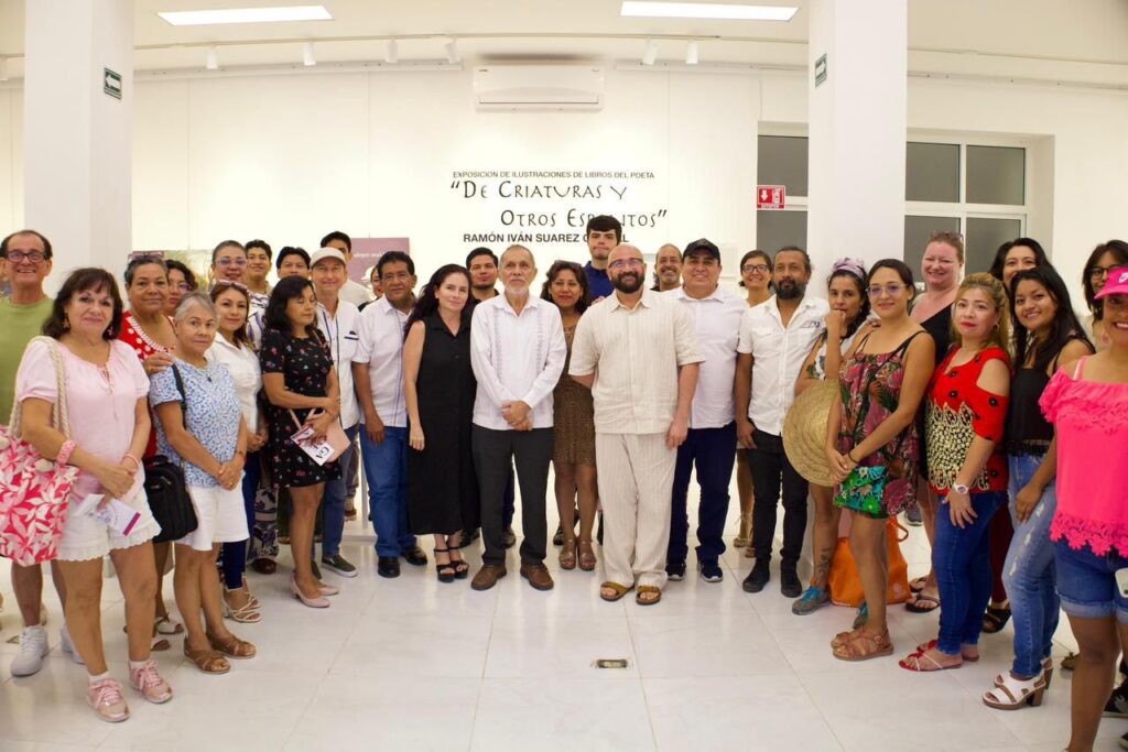La exposición, impulsada por el Instituto Municipal de la Cultura y las Artes de Playa del Carmen, presenta las obras visuales de Gustavo Aldair Suaste Ortiz y Yancarlos Perugorría, inspiradas en libros de Suárez Caamal, autor de la letra del Himno de Quintana Roo y referente de la poesía mexicana contemporánea.