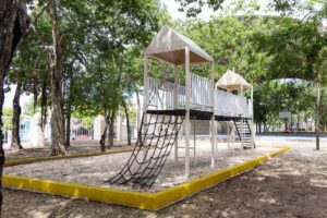Julieta Martín Azueta, secretaria de Servicios Públicos Municipales, explicó que la recuperación de parques y domos incluye pintura con el color “Arena Playa”, limpieza general, rehabilitación de domos, bancas, áreas deportivas y juegos infantiles, así como iluminación y señalización, para ofrecer espacios funcionales y seguros para la comunidad.