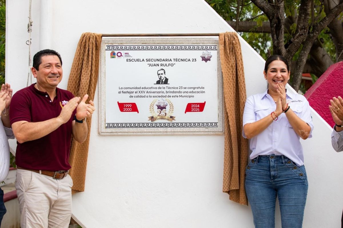 En un emotivo acto conmemorativo, la presidenta municipal Estefanía Mercado encabezó este lunes la ceremonia por el 25 aniversario de la Escuela Secundaria Técnica Número 23 “Juan Rulfo”, reafirmando su compromiso con la educación como motor de transformación social y pilar fundamental del desarrollo de Playa del Carmen.