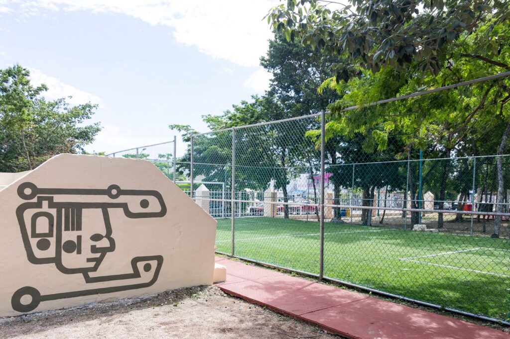 La renovación incluyó la instalación de juegos infantiles, pasto sintético en canchas de fútbol, luminarias rehabilitadas, baños públicos con un tinaco de 2,000 litros y sistema hidráulico, andadores mejorados y pintura en tonos Arena Playa, preservando los árboles existentes. Estas mejoras, financiadas con un presupuesto municipal de 4.5 millones de pesos, según Quintana Roo Hoy, buscan fortalecer el tejido social y la construcción de paz.