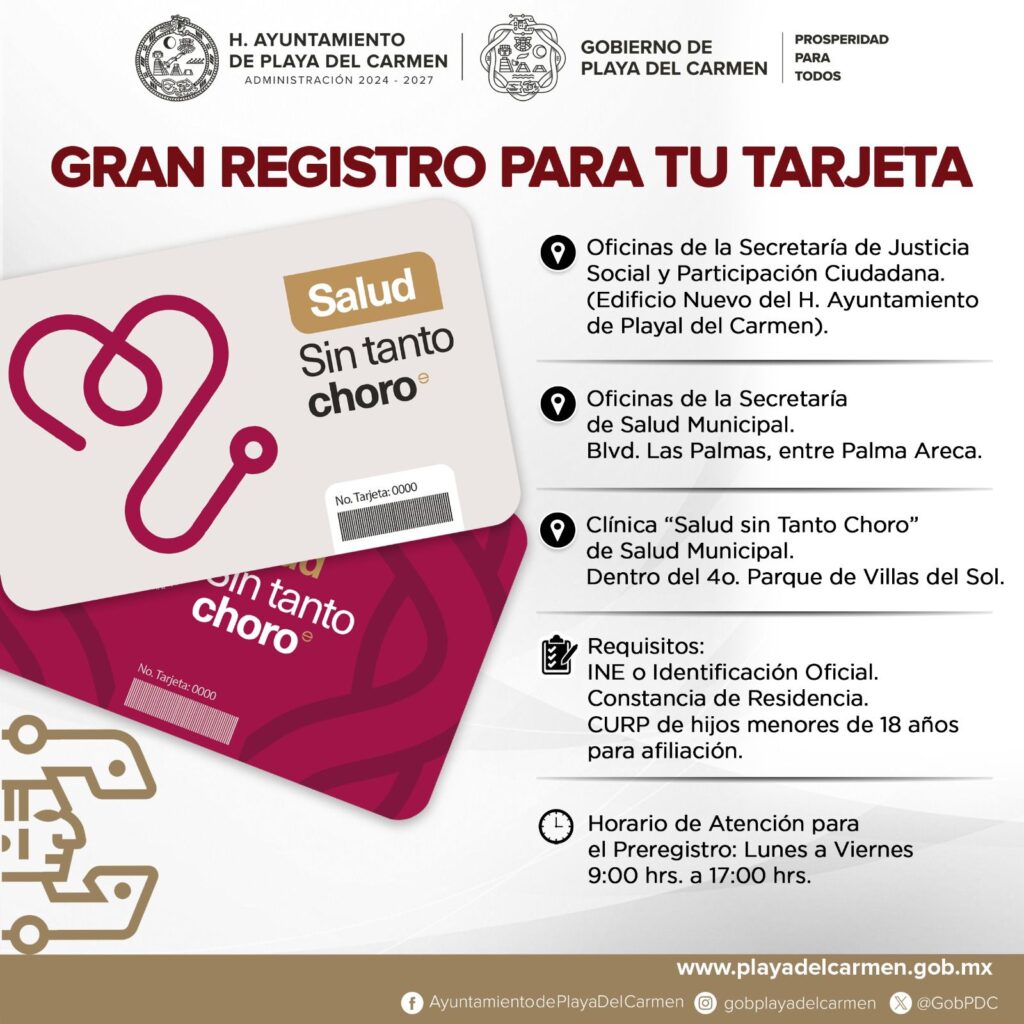 El Gobierno Municipal de Playa del Carmen, liderado por la presidenta municipal Estefanía Mercado, arrancó oficialmente la campaña de registro ciudadano para acceder a la tarjeta del programa “Salud Sin Tanto Choro”, una de las iniciativas prioritarias en materia de justicia social y salud pública impulsadas por la administración.