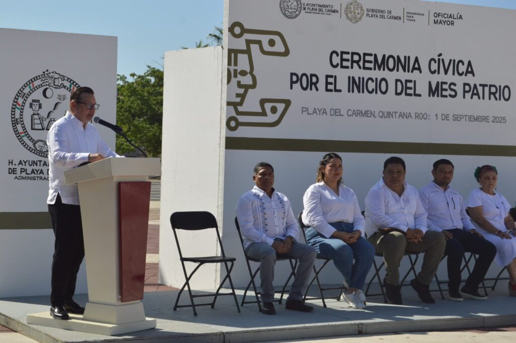 En una ceremonia cívica en la Plaza 28 de Julio, el secretario general del Ayuntamiento, Luis Herrera, encabezó el izamiento de la bandera nacional, marcando el inicio del mes patrio con un mensaje de heroísmo cotidiano. A nombre de la presidenta municipal Estefanía Mercado, Herrera destacó que “el heroísmo no solo está en la historia, sino en los ciudadanos que con esfuerzo y trabajo honesto sostienen a sus familias y hacen grande a Playa del Carmen”. Subrayó que la bandera mexicana simboliza libertad, justicia y dignidad, valores que guían el rumbo de la ciudad y del país.