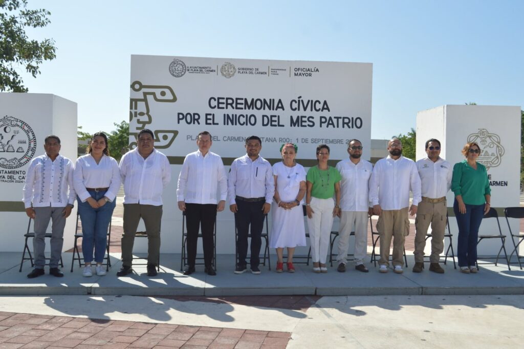 La ceremonia incluyó honores a la bandera monumental y la entonación de los himnos Nacional Mexicano y de Quintana Roo, reforzando la identidad local y nacional. En el presidium estuvieron presentes las regidoras Matilde Carrillo, Josefina Muza y Xelha Dehesa; el regidor Orlando Muñoz; el secretario de Salud, José Uribe; el secretario de Protección Civil, Darwin Covarrubias; la titular del Órgano Interno de Control, Cristina Alcérreca; el director del Instituto de la Cultura y las Artes, Ernesto Martínez; y el alcalde de Puerto Aventuras, Gilberto Gómez.