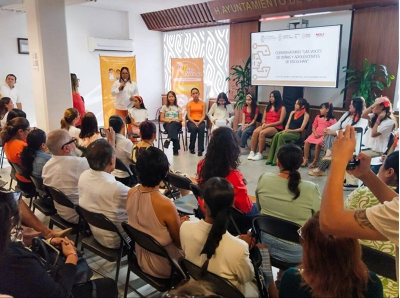 El conversatorio se organizó en el marco del Día Naranja y estuvo a cargo del Sistema de Protección Integral de Niñas, Niños y Adolescentes (SIPINNA) y de la Primera Regiduría. En representación de la presidenta municipal, la primera regidora Milagros Álvarez destacó que escuchar a niñas y adolescentes no es un gesto simbólico, sino una obligación del gobierno local. Señaló que sus ideas y preocupaciones serán integradas a acciones concretas que permitan construir una Playa del Carmen más justa y segura.