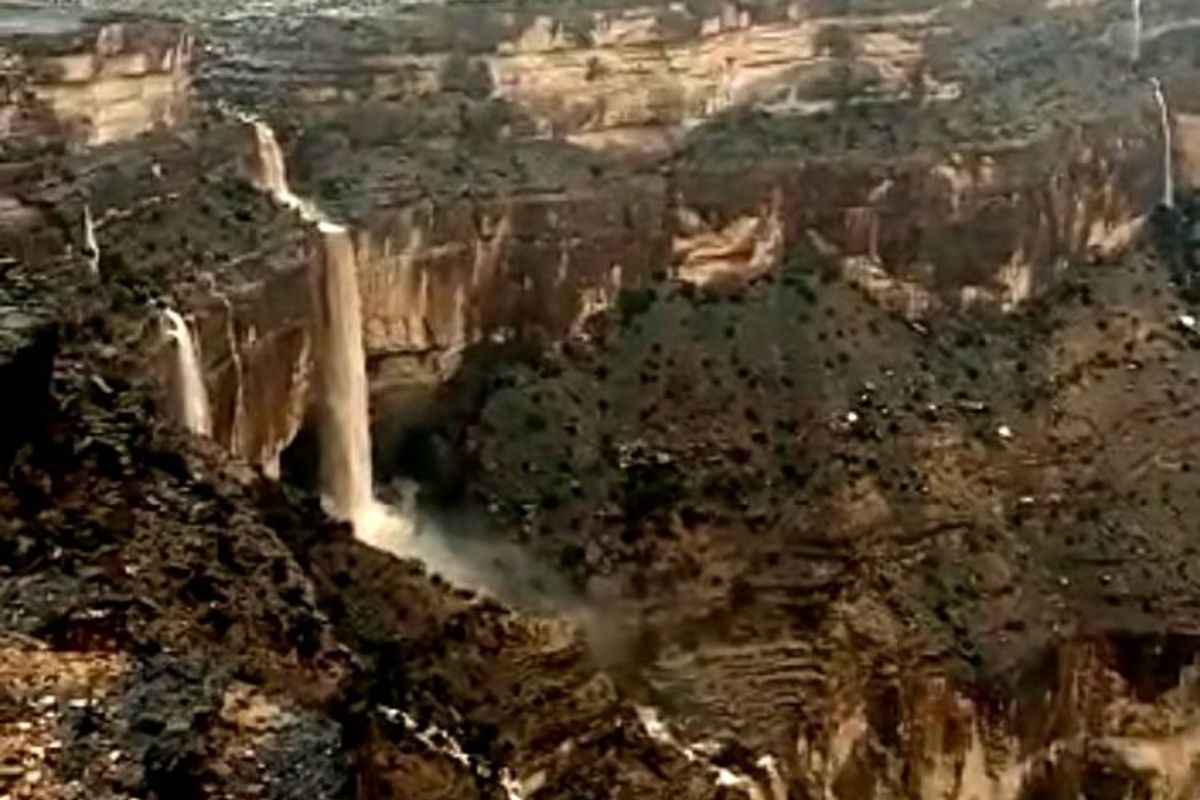 Un video que circula en redes sociales, particularmente en X, captura la formación de una cascada en las montañas de Jebel Shams, el pico más alto de Omán, tras lluvias recientes en la región de Al Dakhiliyah. El clip, compartido por usuarios como @OmanNature y @TravelGulf, muestra cómo el agua se desliza lentamente hacia un acantilado, creando un espectáculo natural en una zona conocida como el “Gran Cañón de Arabia”. Este fenómeno, aunque raro, resalta los desafíos de Omán para acceder al agua potable, dependiendo en gran medida de la desalinización debido a la escasez de fuentes naturales.