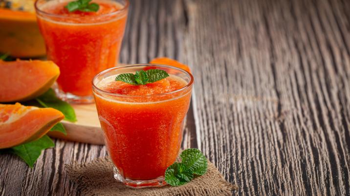 Este licuado verde combina la frescura de la espinaca con el dulzor de la papaya, creando una bebida detox repleta de fibra y antioxidantes.